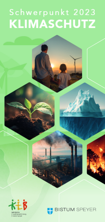 Im Themenschwerpunkt 2023 widmen sich verschiedene Institutionen der Katholischen Erwachsenenbildung dem Klimaschutz und beleuchten Ursachen, die heutige Situation sowie Handlungsmöglichkeiten für klimafreundliches Verhalten und erforderliche Anpassungsmaßnahmen.